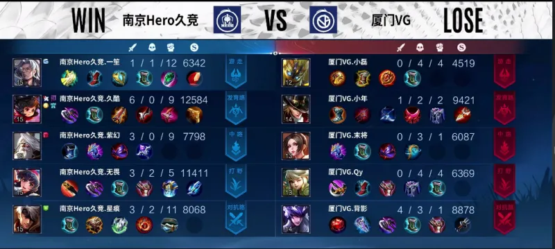 蓝色方:南京Hero久竞 红色方:厦门VG