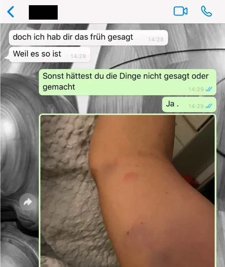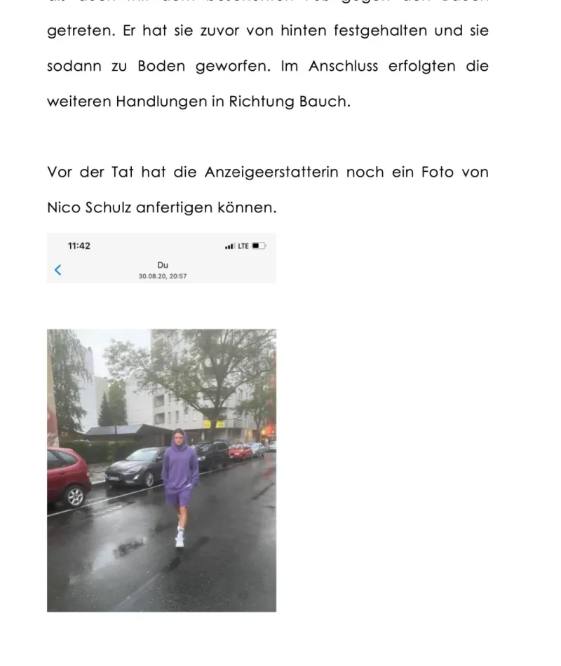 作为证据,文中附上了WhatsApp消息和电子邮件的截图,舒尔茨在截图中承认了自己的行为,并为自己的行为道歉。为了证明聊天对象实际上是舒尔茨, B展示了J与舒尔茨视频通话的截图。