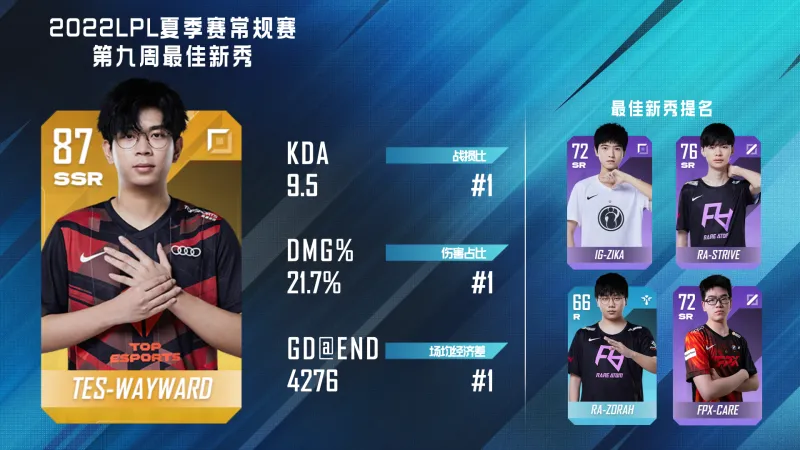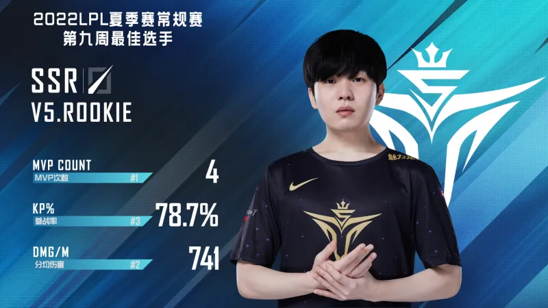08月08日讯 2022LPL夏季赛第九周最佳阵容: