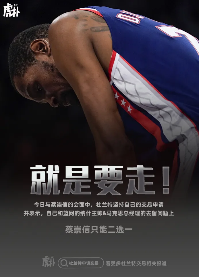 多位消息人士透露,杜兰特告知蔡崇信,他对于篮网目前的方向没有信心。