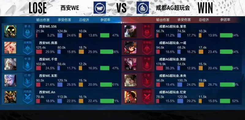 2分30秒,Ag率先开团,未造成击杀,被WE抓住机会反打,WE零换三赢得团战