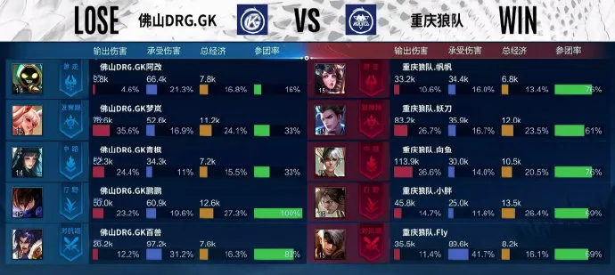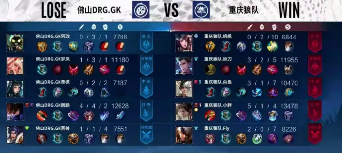 Game1:蓝色方佛山DRG.GK 红色方重庆狼队