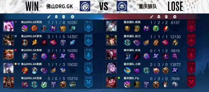 Game3:蓝色方佛山DRG.GK 红色方重庆狼队