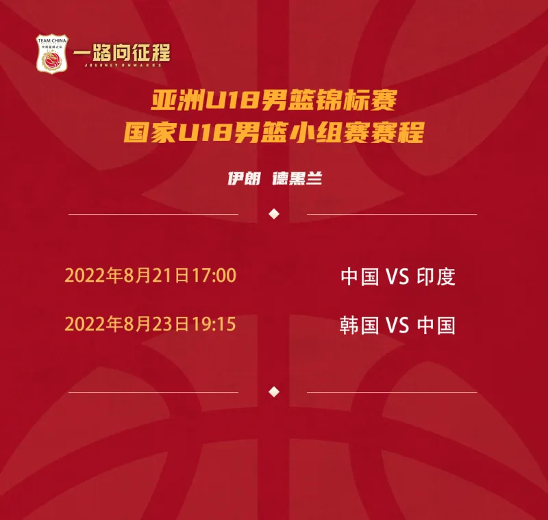 2022年8月15日国家U18男篮将由广州出发前往伊朗,参加2022年8月21日至28日在德黑兰举行的亚洲U18男篮锦标赛。国家U18男篮在小组赛中被分在B组,同组两个对手为韩国队和印度队。