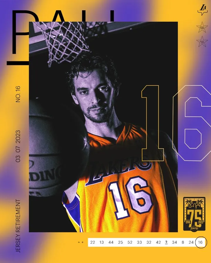 湖人将在2023年3月8日对阵灰熊的比赛中进行加索尔的球衣退役仪式。