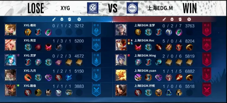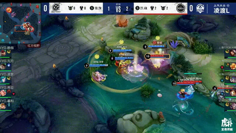 2分25秒,出其不意的Gank,EDGM一套combo连控,伤害及时灌上击杀王昭君,Ming弈星拿到一血