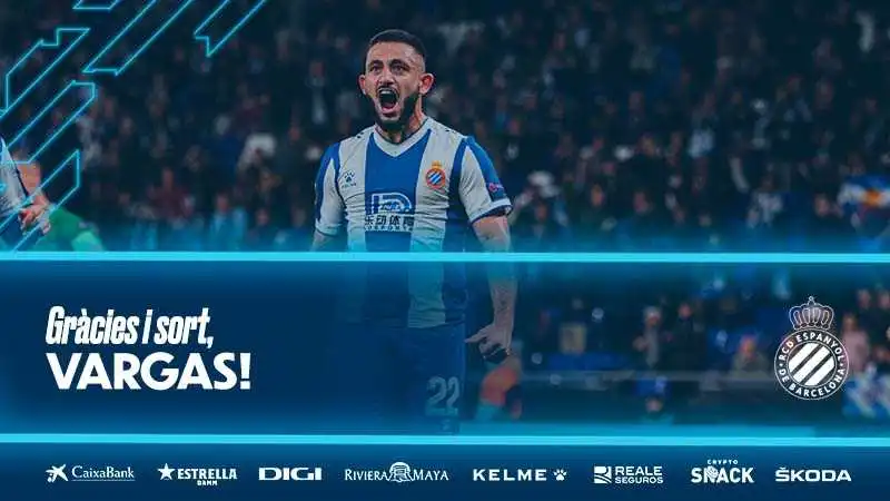 阿根廷边锋巴尔加斯于2019年加盟西班牙人,为球队在各项赛事中出场42次,期间租借加盟阿达纳德米尔斯波尔俱乐部。此前西班牙人前锋武磊已经转会回归了上海海港,他将与巴尔加斯再度成为队友。