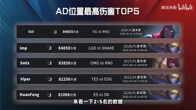 此前AD位置单场最高输出是UZI在2018年夏季赛对阵VG的比赛中打出的单场84855输出。