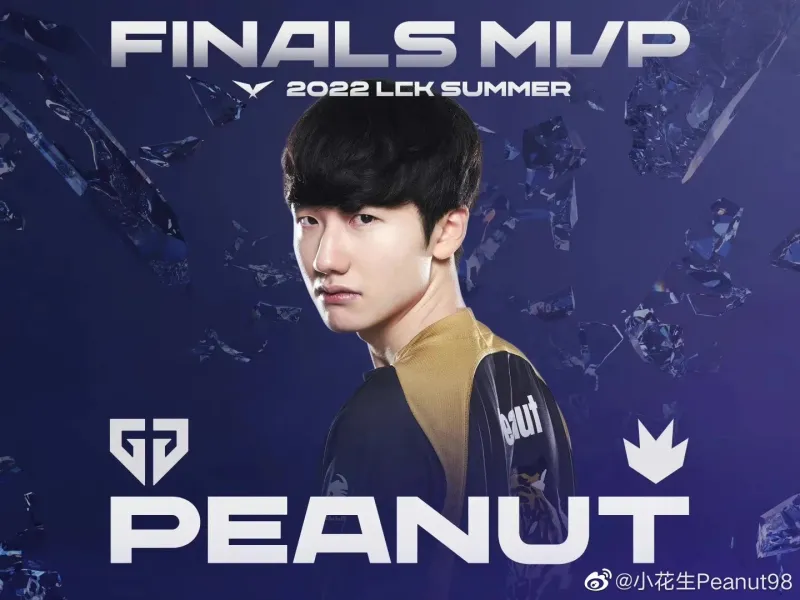 在昨天结束的LCK夏季赛决赛里,Peanut率领GEN直落三局击败了春季赛冠军T1,这样说GEN队史第一次在决赛里击败了T1,也是GEN在LCK时代的首冠,而Peanut也凭借着三场出色的bu表现加冕FMVP。