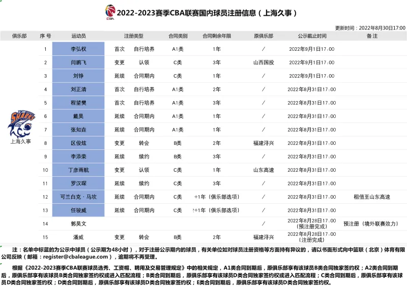 区俊炫在个人微博上这样写道:“很高兴能回归这个大家庭,新赛季和兄弟们一起加油,鲨向未来!”