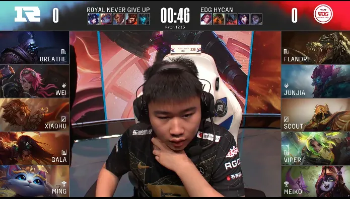 EDG选用:Flandre鳄鱼,Junjia巨魔,Scout沙皇,Viper泽丽,Meiko露露