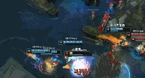 4分钟:武器在遭到gank后交闪等队友赶到反杀鳄鱼拿下一血