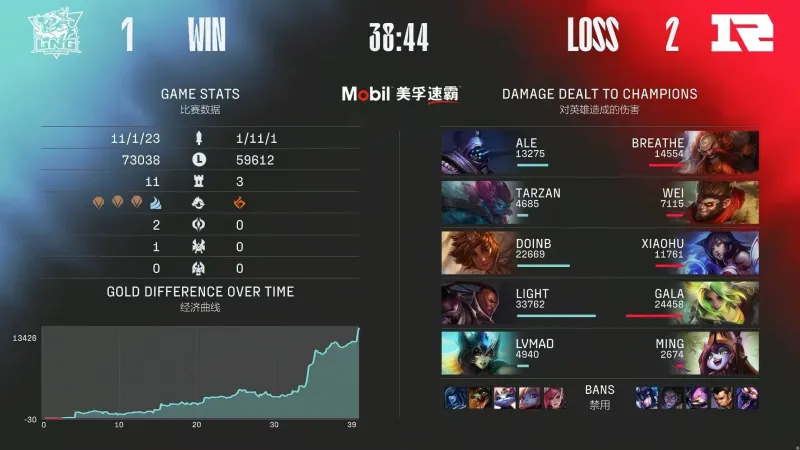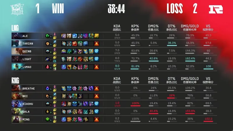 32分钟,LNG大龙团战打出0换3大获全胜。