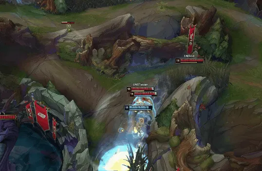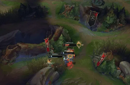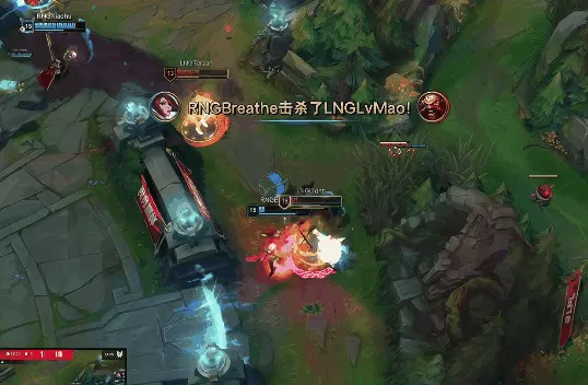 3分钟,打野野区1V1,猴子闪现撞墙,LNG打出1换2。