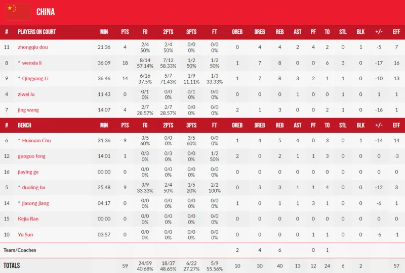 李文霞18分8篮板3抢断,李青阳14分8篮板1抢断,初慧萱9分5篮板4助攻1盖帽,胡多灵9分3篮板1助攻。