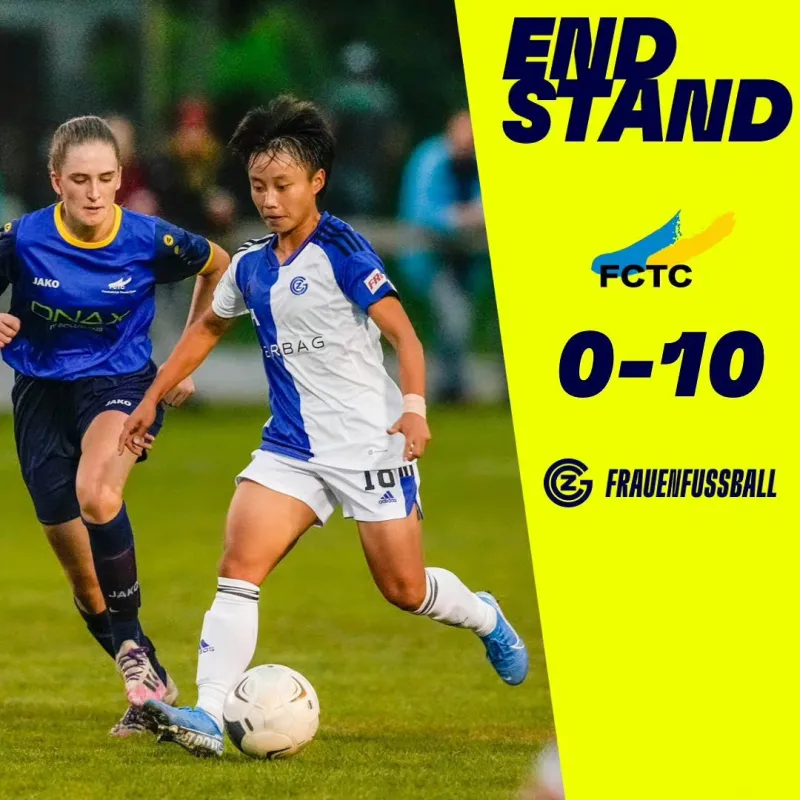 报道中表示,在昨晚进行的瑞士杯第一轮中,中国新援张琳艳首发出战,并帮助草蜢女足10-0大胜低级别联赛球队FC Thusis/Cazis顺利晋级。张琳艳贡献了1球3助攻。