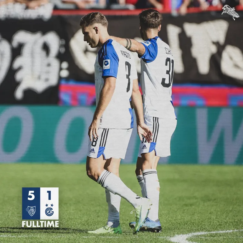 最终,9人作战的草蜢客场1-5不敌巴塞尔。