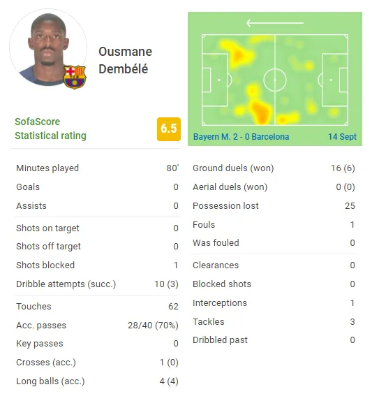 登贝莱全场数据: