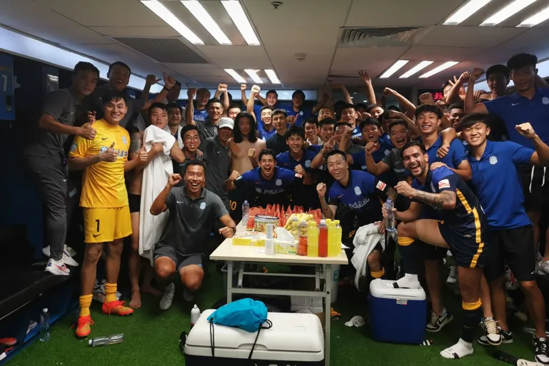 09月13日讯 中超第18轮,广州城1-0击败广州队,收获联赛2连胜。赛后,广州城足球俱乐部官方在社媒发布了一张球员们在更衣室庆祝获胜的照片,并配文:久违。