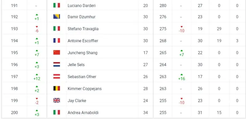凭借上周在2022ATP挑战赛卡里站晋级16强,商竣程首次排名进入世界前200位。另外,张之臻和吴易昺都位列世界前150位,分别排名124和131位。