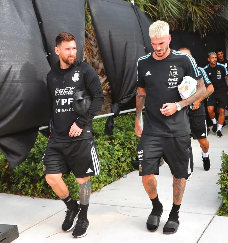 虎扑09月22日讯 在阿根廷队备战友谊赛的梅西更新了自己的Instagram动态,晒出了2张训练照:一张是与迪马利亚、帕雷德斯、德保罗等人的训练合照,另外一张则是与德保罗的两人训练照。