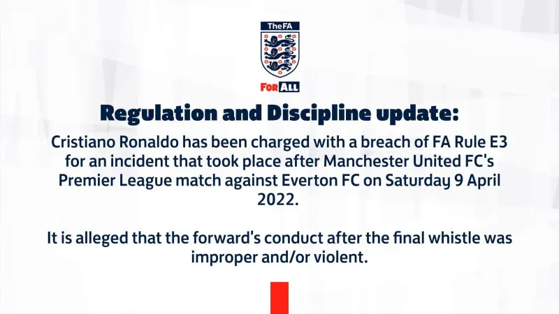 早在今年4月9日曼联对阵埃弗顿的比赛后,C罗在离场时摔坏了一名小球迷的手机,并对其手臂进行了暴力行为。如今该一系列行为受到了英足总的正式指控。