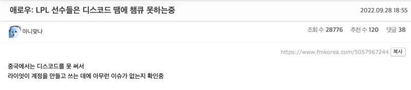 虎扑09月29日讯 前KT战队AD、现IMT二队Arrow选手在直播中提及LPL选手不打北美超级服的原因,韩网原帖翻译如下: