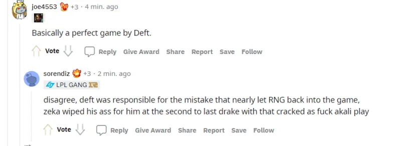 不同意,Deft要为RNG打回来的那波负责任。Zeka那波替Deft擦了屁股,他的阿卡丽太猛了。