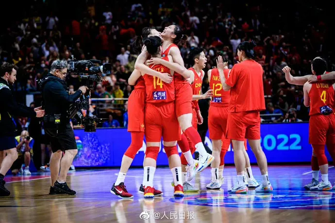 虎扑09月30日讯 女篮世界杯半决赛中国女篮迎战澳大利亚女篮。经过四节鏖战,中国女篮最终61-59绝杀澳大利亚,挺进决赛。赛后,人民日报官微晒中国女篮庆祝照。