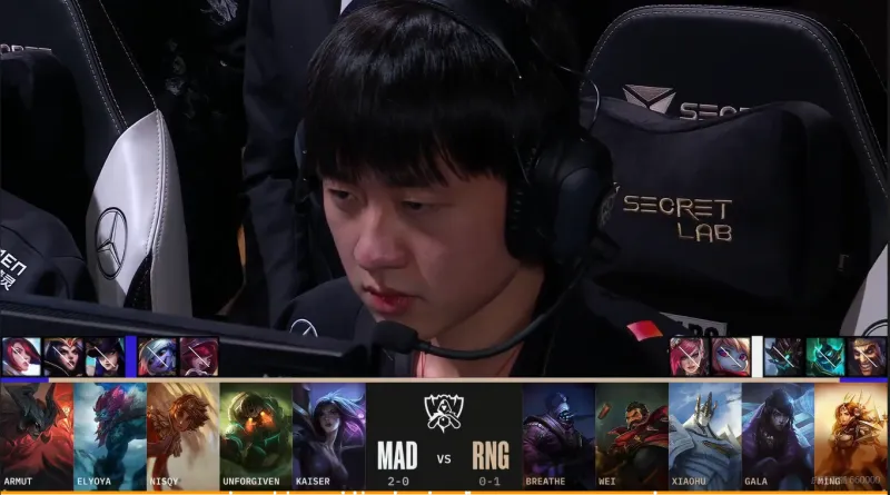 RNG选用:Breathe武器大师、Wei男枪、Xiaohu加里奥、GALA厄斐琉斯、Ming日女