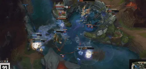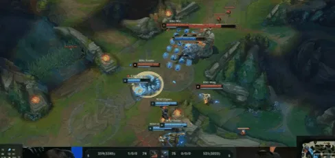 15分钟,加里奥闪现嘲讽留人,RNG完成一波1换3团战,武器大师斩获三杀。