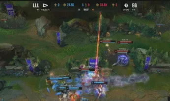 15分钟双方爆发先锋团,Jojopyun沙皇回旋腿分割LLL阵型,EG打出0换2手握5K经济优势;
