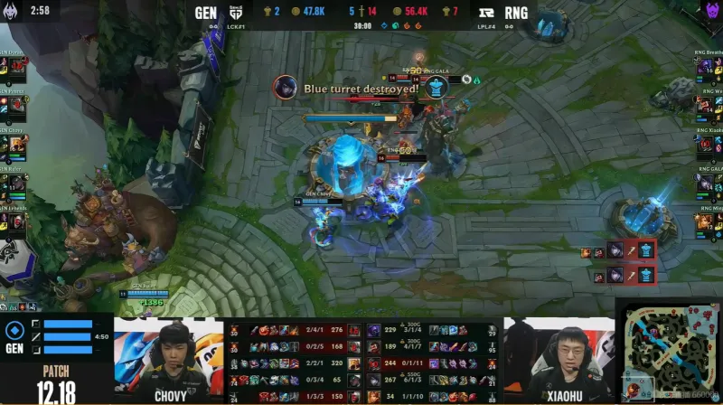 Game1:蓝色方:GEN,红色方:RNG