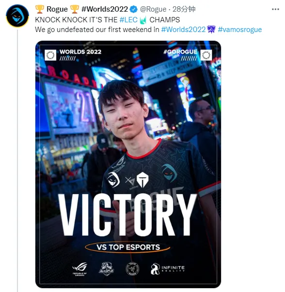 LOL赛事官推:RGE第一周打出了完美的表现