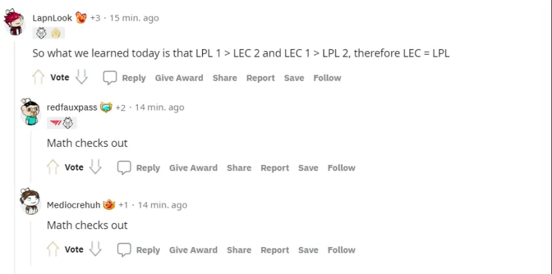 所以我们今天学到的东西是:LPL #1 > LEC #2,LEC #1 > LPL #2,所以LEC=LPL。
