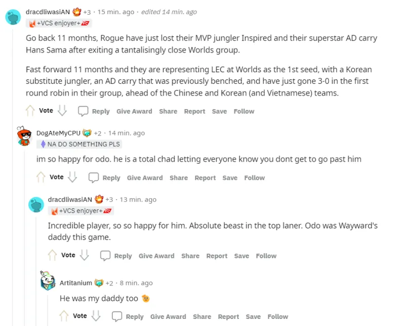 11个月以后,他们作为LEC的一号种子登上世界赛的舞台,打野是之前韩国队伍的替补,AD也是之前其他队伍的替补,刚刚以3-0结束了小组赛第一轮,排在中国,韩国(以及越南)队伍之前。