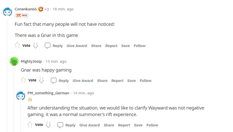 在了解状况后,我们想澄清Wayward并没有消极游戏,是一把很平常的对局。