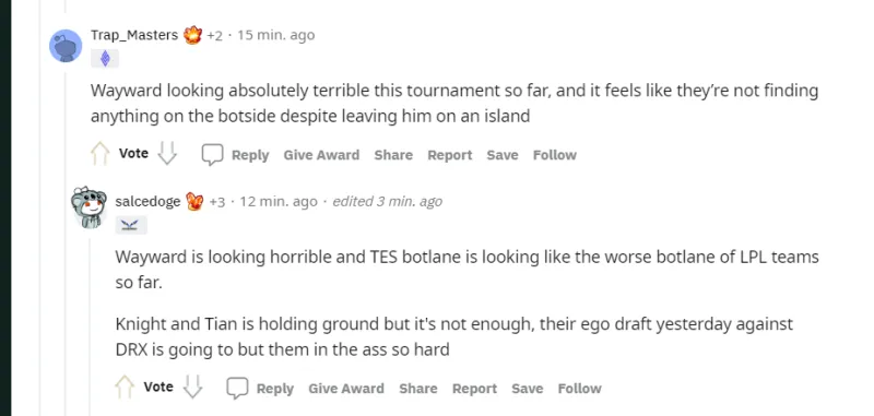 Wayward看起来是真的差劲,TES的下路感觉是这届LPL队伍中最差的下路。