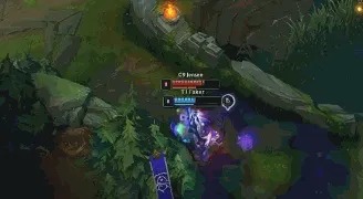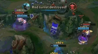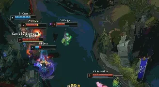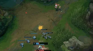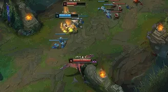 9分钟:猪妹来到下路抓死对方双人组,但是自家杰斯也被抓死,随后猪妹来到上路配合赶来的队友收掉对方野辅拿下先锋。