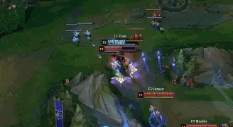 10分钟:卑尔维斯来到下路抓到落单的杰斯一路追击打出单杀。