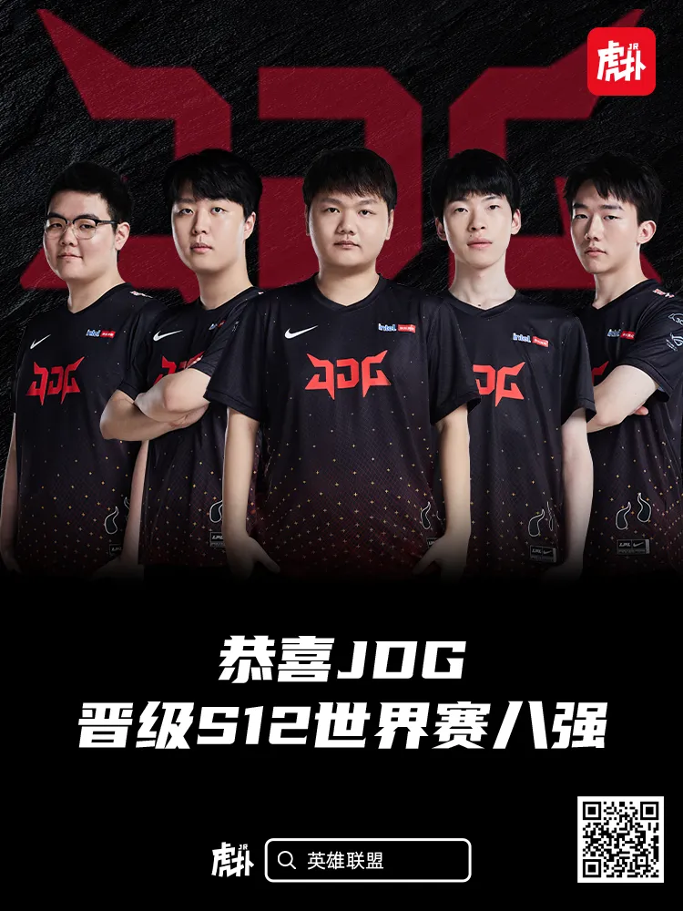 虎扑10月15日讯 在刚刚结束的S12世界赛B组小组赛第二轮中,在EG击败G2送给G2小组第三败的前提下,JDG战胜EG提前出线晋级S12全球总决赛淘汰赛阶段,在最后一场与DK的加赛中力克DK,以6-1的战绩成为B组小组第一晋级S12全球总决赛八强!