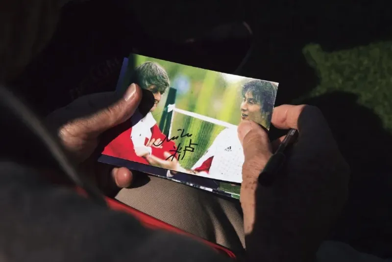 我对他说,在足球上要有目标,就是怎样超越你的爸爸,因为你的爸爸是有一定的足球天赋的,而且你的爸爸也有一定的成绩。