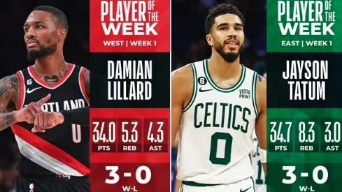 虎扑10月25日讯 今日联盟官方公布上周东西部周最佳球员,开拓者后卫达米安-利拉德和凯尔特人前锋杰森-塔特姆分别当选。