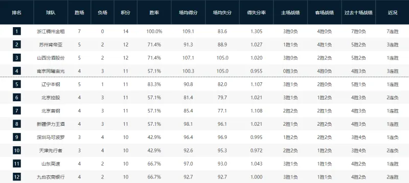 7轮过后,截至目前,两支江苏球队战绩如下:苏州肯帝亚男篮5胜2负,同曦男篮4胜3负。