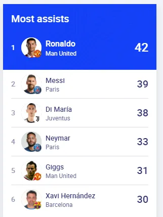 根据欧冠官方统计,在今天凌晨送出2次助攻之后,梅西欧冠生涯助攻数累计39次,超越了迪马利亚的38次升至了欧冠历史第二位,距离第一的C罗差3次。(注:欧冠官方数据包含欧冠附加赛数据)