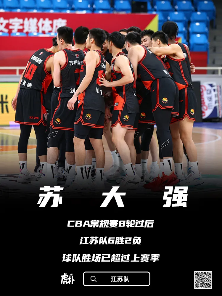 值得一提的是,本场胜利之后,江苏队的胜场数也超过上赛季整个赛季的胜场数。上赛季,江苏队总共只赢下了5场比赛,而本赛季刚过8轮,江苏队就赢下了6场比赛。