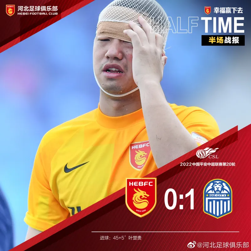 虎扑10月29日讯 中超第20轮补赛,河北队与广州城的比赛,上半场第29分钟,河北队阵中唯一的正牌门将鲍亚雄受伤不能继续坚持比赛,20岁的后卫刘润楠临危受命替补出场担任门将,上半场伤停补时第5分钟,广州城由叶楚贵攻入一球,河北队半场0-1暂时落后。河北俱乐部在官博发文:“好样的,鲍亚雄!好样的,河北队将士!纵使拼到弹尽粮绝也绝不放弃比赛,下半场,继续战斗!”