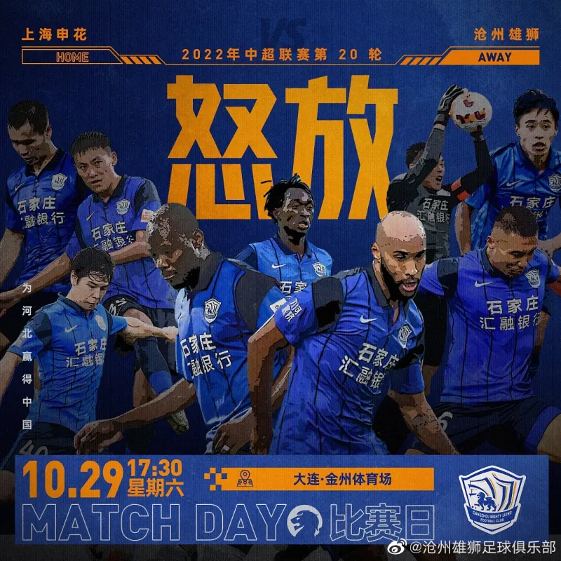 虎扑10月29日讯 北京时间今日17:30,中超第20轮,上海申花迎战沧州雄狮,赛前,双方公布了首发阵容。