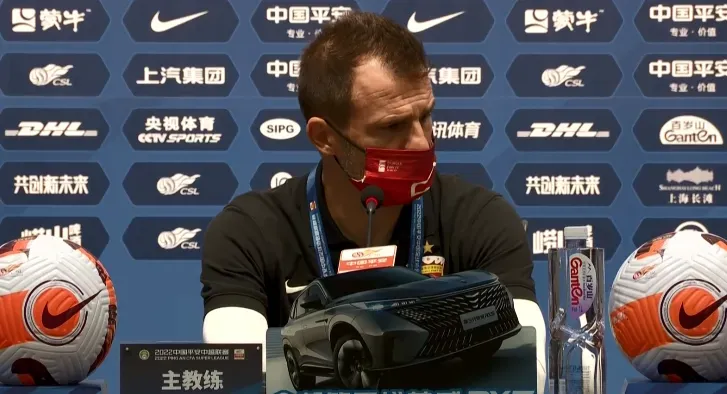 中超联赛第20轮,山东泰山VS上海海港,赛前新闻发布会上海海港主教练莱科携队员保利尼奥出席。