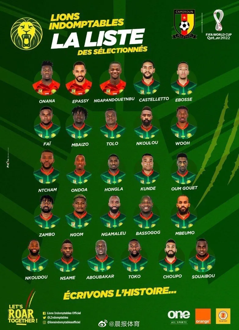 喀麦隆国家队公布世界杯26人名单,现年27岁的上海申花外援巴索戈在列。本届世界杯,喀麦隆队与巴西队、瑞士队以及塞尔维亚队同分在G组。